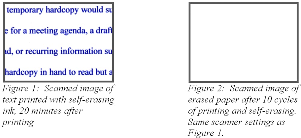 The ink was awarded U.S. patent number 8,328,317 Self-erasing printing system, and development was supported by the U.S. National Science Foundation SBIR grant number 1519546.