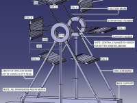 - Cylinder has support structure attached on its faces, fixed by cylindrical beams of 10m diameter to ground.