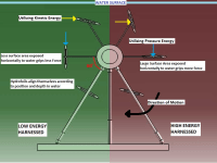 - Primary influence is of Pressure Energy acting on large hydrofoil areas at varying depths.
