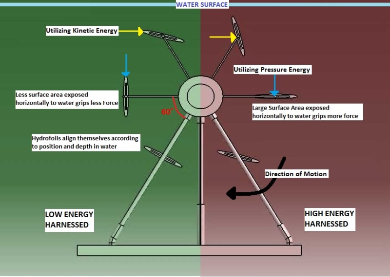 - Foil 5 and 6 align themselves in a manner that, they can harness maximum kinetic energy from waves and tides. (But neglected, as stated in methodology)