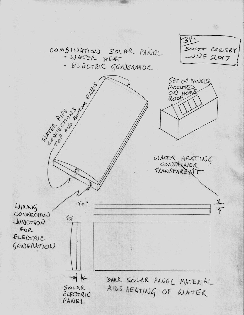 The main component I am presenting is the combined solar panels to generate electricity and hot water. This combined panel utilizes as much solar energy as can be obtained using all currently-available and applicable technologies and techniques.