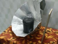 2) Converting light energy to heat energy: Solar heater concentrates sunlight onto a receiver such as a cooking pan.