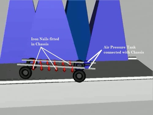 Concept of nails chassis for hill accidents. Every day we hear news of vehicle fallen from hills or bridges. But still we have no solution to stop these accidents and save lives of human beings.