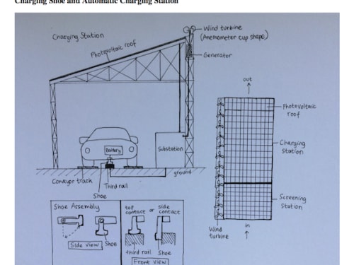 In response to climate issues, there is a significant growth and improvement of electric cars including their market. On the other hand, the long charging time can be the downside of electric cars. To tackle this challenge, Charging Shoe can be the solution. The Charging Shoe and the Automatic Charging Station are inspired by the railway industry,