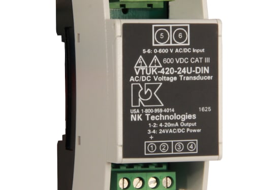 Measuring DC voltage is fairly easy, but AC with distorted wave forms can be a challenge. The design team at NK Technologies has developed a sensor to measure AC or DC voltage, or a combination of both, with the ability to produce an accurate output signal to a PLC or panel meter to 5K hertz, up to 1200 volts.