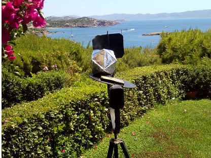 The Concept of the System [Photo 1] is to orientate a solar collector and a Polyhedral Structure [Photo 2] to face the Sun with “Azimuthal” tracking of 270 deg and “ Altitudinal” 90 deg. *