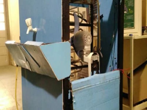 The use of water coolers has increased and become an important appliance in the world of global warming. Most of the coolers are electrically operated. In this study an experimental setup of evaporative water cooler using solar energy is designed and developed. It works on the principle of heat transfer using evaporation of water.