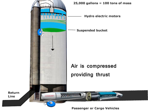 My idea to Create the Future of transportation, is to link urban centers and help eliminate traffic and pollution by employing renewable energy and one of the most powerful forces in nature, falling water, to operate a Hyperloop. The idea is to elevate water by pumping it to a high point using solar energy and then using that mass,