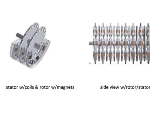 The laws of physics restrict the rotational speeds of traditional large generators due to the increased centrifugal forces. Hoover Dam generators run at around 1.5 - 2.0 Hz.; their substantial centrifugal forces require these and similar generators to run at relatively low frequencies which results in very low specific outputs (kW/lb. and kW/ft3).
