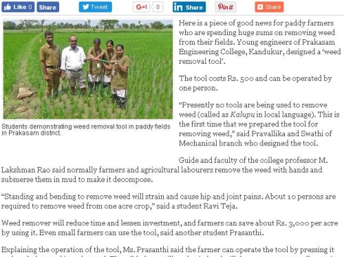 Presently no tools are used to remove the weeds in paddy fields. Humans stand in the field and bend and remove the weeds with hands and then submerse the weeds in mud slurry, so that the weeds decompose in the fields.
