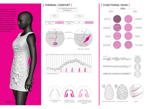 This project is about a supplemental skin that respires. It is a garment for the modern human, who wanders during the day in the city, a “microenvironment” around the wearer that interacts with the broader changing environment and helps to maintain the condition of thermal comfort.