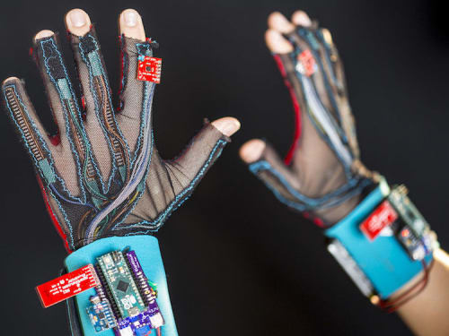 SignAloud is a pair of gloves that can translate sign language into a verbal form instantaneously and in an ergonomic fashion. These gloves are a communication tool for people who may have trouble speaking and those who use sign language. Users simply wear the gloves and calibrate them and when they sign,