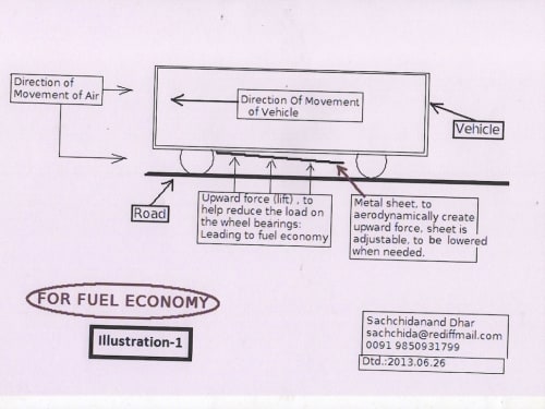 As per Illustration 1- principles of Ekranoplan can be used to reduce fuel consumption of vehicles- like trucks- by reducing their effective weight, which would lead to reduction in friction, which in turn, would lead to reduction in traction torque,