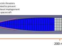The collector spacecraft are designated “Pelican,” for their habit of descending into Earth’s atmosphere to collect sustenance. Each has a mass of 2,600 kilograms. This includes an inflatable ram scoop, electric thrusters to compensate for atmospheric drag and to change the spacecraft’s orbit, thin-film solar arrays to provide power, equipment to compress and liquefy incoming gas, and the spacecraft’s structural, thermal, communications, and control systems. The spacecraft are designed to be launched in groups of 8 inside the 5-meter fairing of a standard expendable launch vehicle.