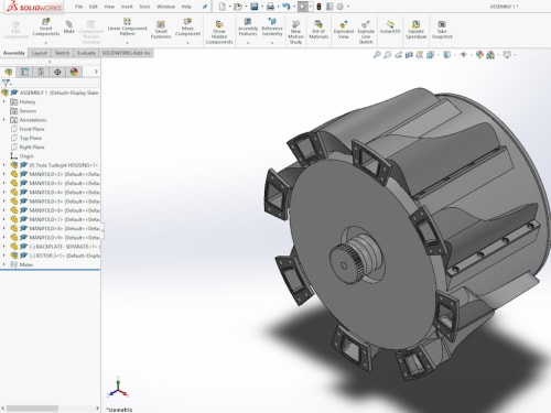 An efficient, geared turbofan jet engine with reduced complexity and cost compared to conventional alternatives. I have talked with experienced technicians, as well as done some extensive research on the technologies involved, and have revised this concept over the past year and a half. As modeled, it is not 100% ready for commercial use,