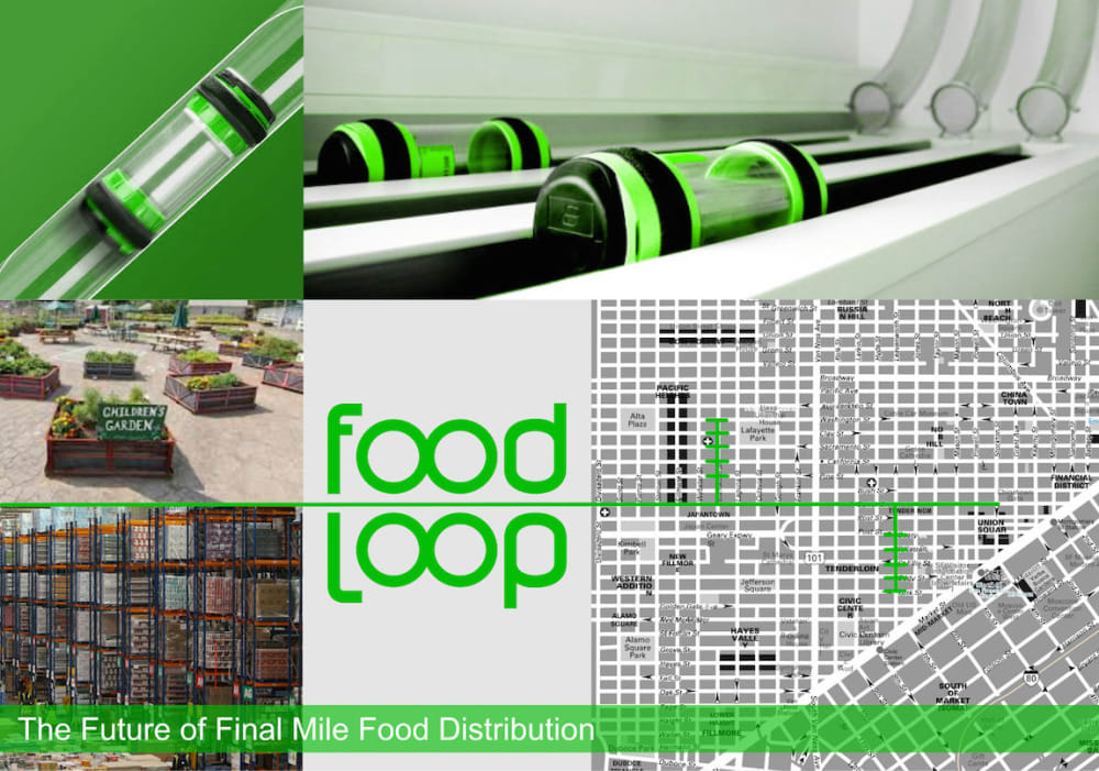 However, human beings do need to ingest food on a regular basis. Bringing food within physical grabbing distance of humans is a “need to have.” FoodLoop suggests a new (or rather reengineered) Pneumatic Tube Transport system for cities. FoodLoop facilitates the distribution of food from warehouses/urban farmers to individual homes via a new infrastructure of standardized tubes and transport canisters of an adequate size to transport commonly sized consumer goods. Food scraps and used packaging are placed in packed in the empty canisters.and literally sucked back into the eco-system for re-use