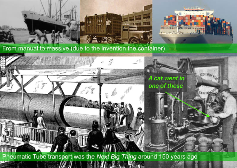 New transport systems for human beings (such as Hyperloop) is fundamentally a “nice to have” concept; in our day and age people do not need to physically meet on a daily basis (they can even reproduce without meeting).