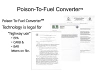 1. Poison-To-Fuel ConverterTM is approve to be installed behind existing, EPA C.C. systems As a means to reduce EPA poison gasses.