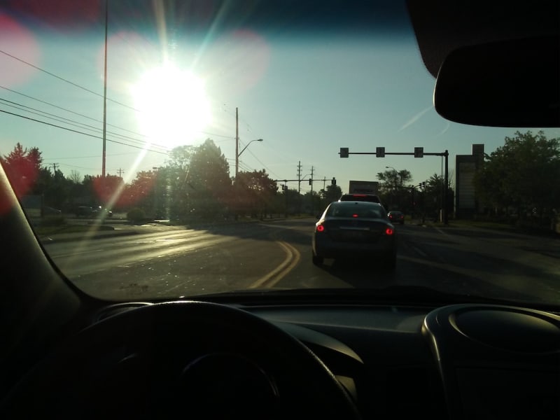At one time or another we have all had to deal with driving into the sun. My idea is to have a small tinted area that is able to follow the blinding sun based on the position relative to the driver. The clear material would be placed on the inside of the windshield for a retrofit or in the case of a new vehicle, it could be part of the original glass.
