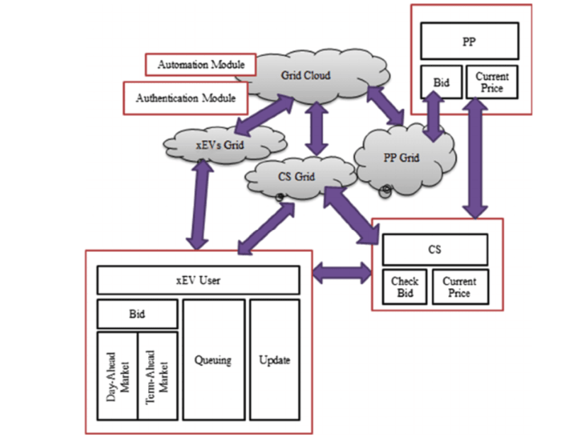 Smart charging system for electric vehicles using cloud based monitoring and management is demonstrated in this work. xEVs (electric plugin hybrid, battery electric vehicles) Charging Management System is crucial for the dynamic demands of charging infrastructure, namely perspectives from automakers, electricity providers, vehicle owners and charging service providers. Through dedicated interface, the developed system is capable of providing real time information to xEVs users regarding the nearest charging station with minimum queuing delay, with minimum charging cost through a secured online accessing mechanism for accessing Sate of the Charge (SOC) of the xEV’s battery being charged. The system not only provides an execution framework for the xEVs users but also provides an optimal energy trading solution to all entities involved in a smart charging infrastructure such as charging station, aggregators, smart grid etc. The work also explains the cloud enabled bidding strategies that look for day-ahead and term-ahead markets. The aggregators will use the smart decisions undertaken by cloud analytics to execute their bidding strategies in a way to maximize the profit. Further, the work also assesses the possible cyber security aspects of such architectures along with providing possible solutions.