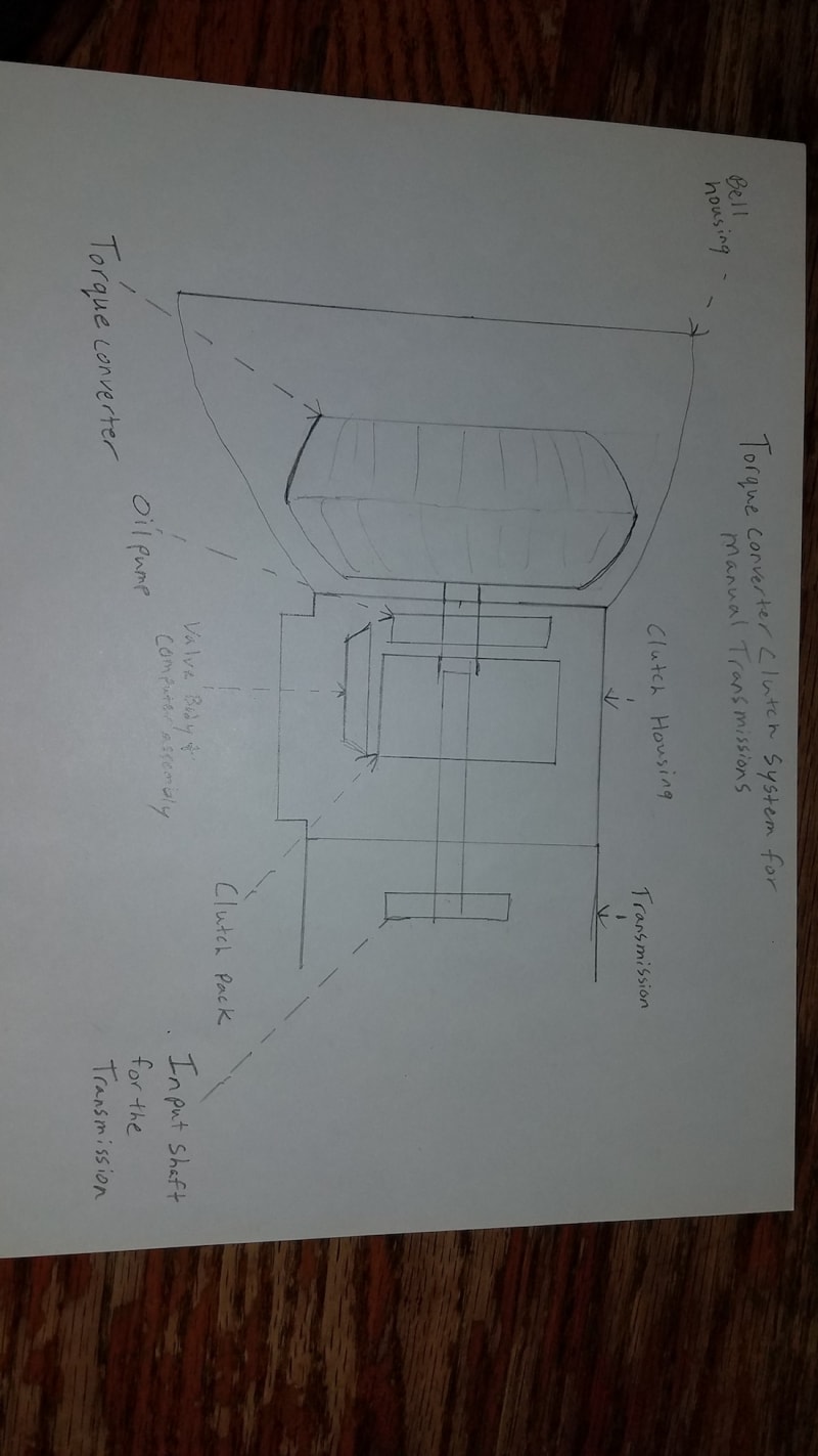 a. The novelty of this system is that it incorporates a torque converter into a manual transmission system which will allow an operator to shift the transmission into gear but at the same time not move the vehicle until appropriate time to move the vehicle. In the traditional vehicle, this situation will cause an engine stall out while this system will prevent stall out and allow for a smooth initial start of the car. The initial movement of manual clutch vehicles is typically where the most wear of the clutch occurs. This new clutch system significantly reduces this initial start wear thus reducing maintenance costs while also smoothing out the transitions between gears providing greater operator comfort. A disabled individual could use this system because it allows the use of a push button to operate the clutch.