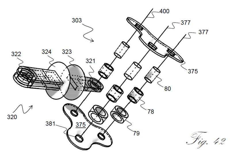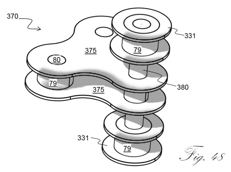 INVENTION: “Triangular-chain link” (3-Points) replaces the prior art linear links (2-Points) assembled around on sprockets by providing a chain drive that extends a mechanical structure, an additional moment arm, at a greater radial distance from the center of sprocket’s conventional linear chain drive outer chain link surface in motion. The conventional past roller chain 2-Points traveling on sprockets relative to the 3rd-point of the triangular-chain link are still functioning in the same way as Prior Art, but with the addition of a triangular-chain link (FIG 41) an additional motion translational geometry of the 3rd Point is added to reciprocate rods of a piston during the movement from straight chain travel, CLOSED PISTONS, between the triangular-chain link's 3rd Points, then travel around the Circle-Arc of sprocket that OPENS PISTONS, a motion translational function happening twice around each of two sprocket Circle-Arcs: compressing and expanding piston-cylinder assemblies sequentially in a series, stretch and compress piezoelectric materials to drive the chain assembly or generate electricity from forced eWafer(TM) motion - like wind or water motion that can force movement between a pair of triangular-chain links stretching and compressing piezoelectrics in a cycle of motion translation.