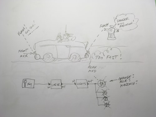 Teen and young drivers are the most likely to be involved in serious and/or fatal accidents. Their inexperience is dangerous, yet not known to surrounding motorists. In this invention, the vehicle marker lights could be designed in such a way as to respond to a "juvenile driver" key or fob, of other entry required to start a motor vehicle.