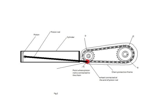 Piston-chain arrangement in IC engine is a method to replace the crank shaft by chain/belt and two connected sprocket/wheels. This method can convert the rotational motion of the crank shaft to a combination of rotational and linear motion. The main advantage of this method is its high efficiency. In the present IC engines,