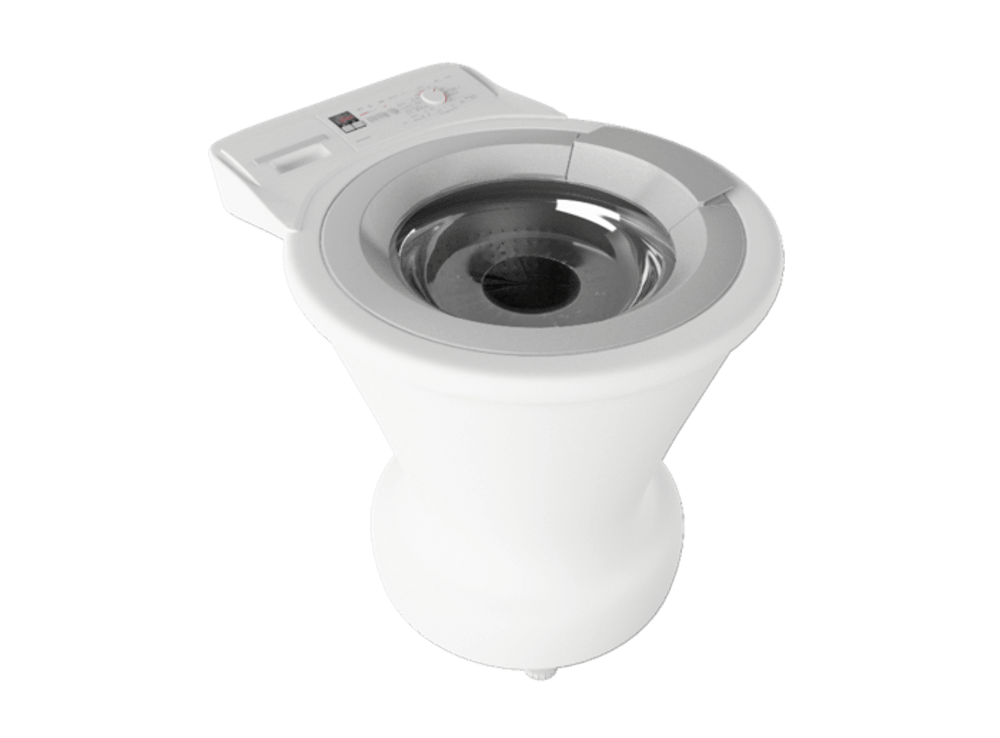 Our washing machine is comprised of a truncated cone water tub with the larger diameter on top. Inside is a conical clothes drum with a lower small, upper large clothes chamber. It has water inlets & drains, water heating, controllers, drying circuits, etc.