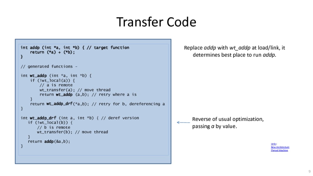 A side effect of moving threads rather than data is that in many cases a common data bus is not required between CPUs, and that greatly improves security. The speculative code execution techniques that led to the Spectre/Meltdown issues with X86 can still be used in a WT machine because it has no physical paths to exploit. Similarly, without the shared data bus, code can reach over larger physical spans, enabling programmers to view large distributed machines the same way the would look at (say) a PC - i.e. it greatly simplifies Cloud-to-Edge computing.
