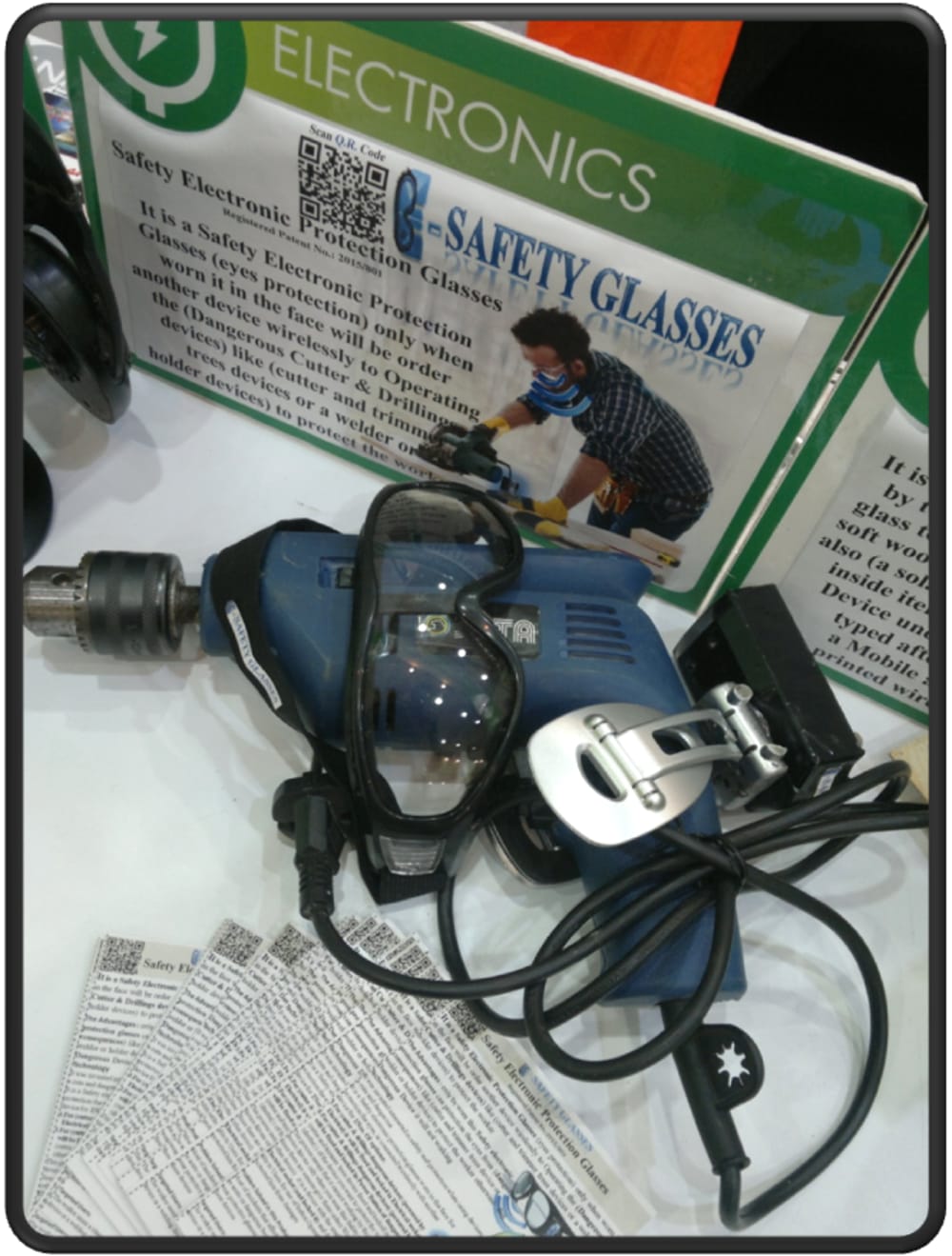 It is a Safety electronic protection glasses worn in the face for protection the eyes, is connected wirelessly with another device for 2Nos. Of options: