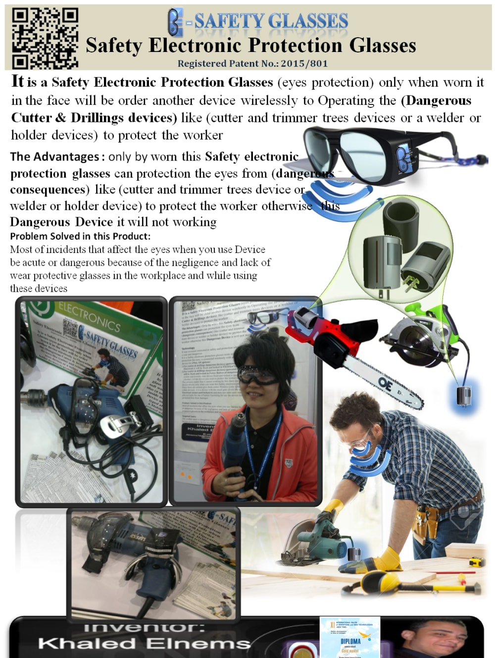 This process meant that it cannot working by this sharp and dangerous device drivers only when you wear this Safety electronic protection glasses Since there are sensors give them orders Wireless (only when worn) to the (other device) to Operate the dangerous device