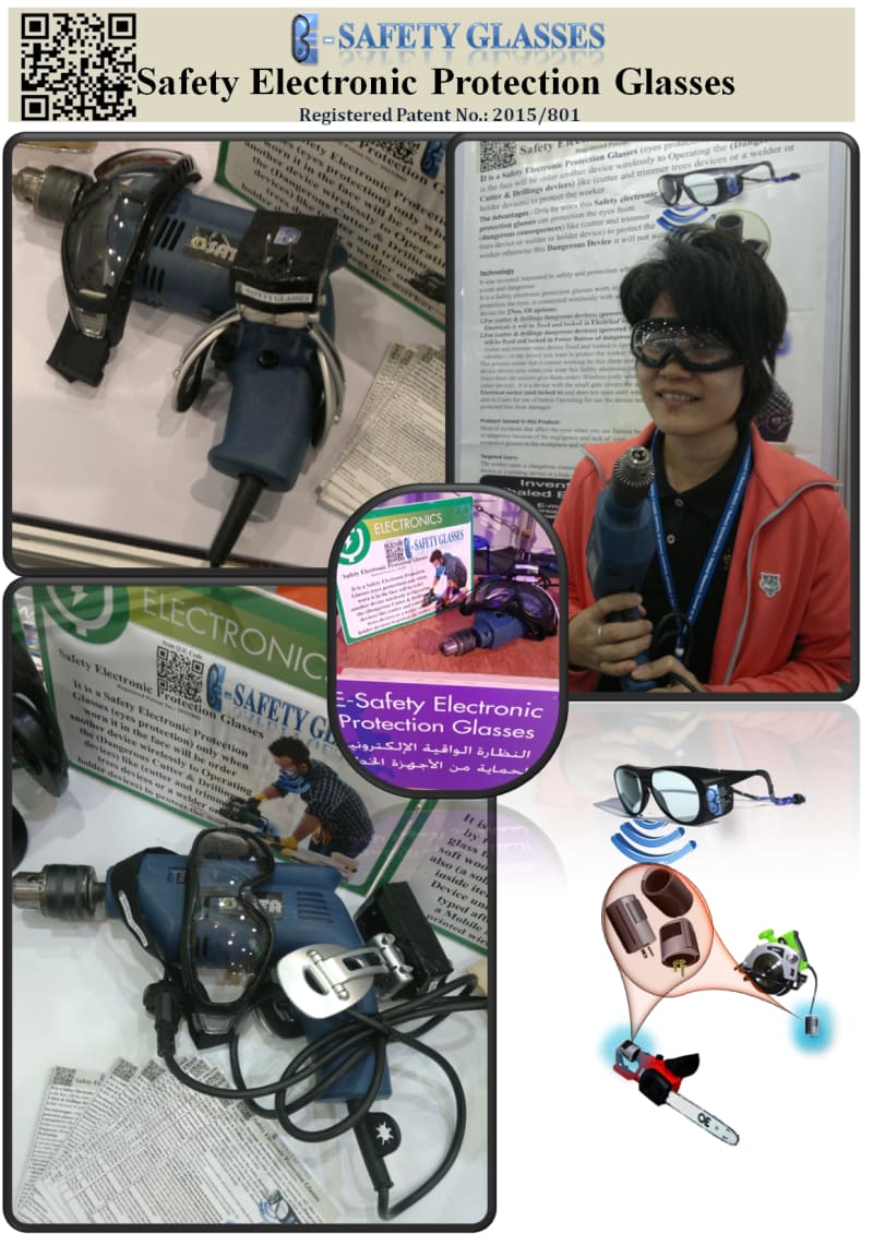 Here the differences between Normal Safety glasses and this New Glasses product (E- Safety Glasses) by supplied feature with electronic specs to enables the owners of workshops and organizations of maintenance and factories Users of such devices dangerous or acute to preservation and safety of their workers Eyes (compulsory) because they under the Responsibility in security and safety matters and not, as is applicable where these workshops or factories or institutions provide protective eyewear, but workers in the neglect to wear them do not care about it.