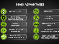 Our wireless and batteryless monitoring unit offers many competitive advantages: