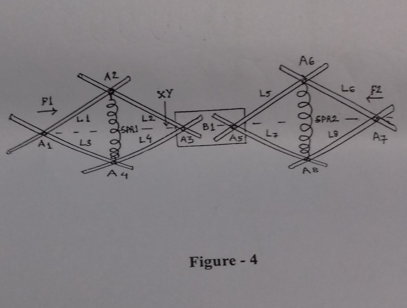 Image 3 shows a mechanism to prevent buckling of springs on compression. The efficiency of the mechanism can be increased by connecting multiple of such units where interconnecting threads THA and THB of perfectly equal lengths as in image 2 must be angled inward in keeping with the conservation of symmetry of the mechanism. The rest of the mechanism and mathematics are similar to the time reversal device entry in 2017 in the same category.