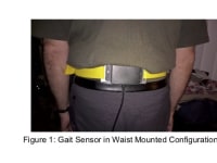 Conceptual feasibility has been demonstrated using the developmental brassboard sensor shown in Figure 1. This device has been worn in pilot tests to measure gait characteristics and to develop signal processing algorithms for the sensor data stream.