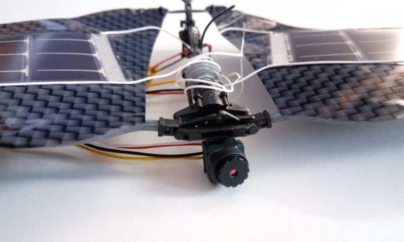 Present robotic birds required to charge before they can fly a few minutes. This particular bird is equipped with flexible solar panels in its wings. These solar panels are producing electrical power. During the flying time, these solar panels produce power and recharge the battery. The length of solar robo warbler is 8 cm and weight only 13 grams. It is made in light weight carbon fiber material. It is equipped with a 1.6 grams Nano wireless video camera. This camera takes photos and videos which are sent to a ground station. Solar robo warbler is the lightest and smallest solar flapping wings robotic bird in the world.