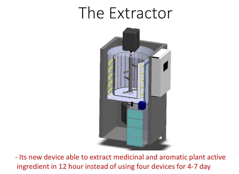 The innovation is a device used to extract plant active ingredient in one step, by combining the features of 4 devices that are used in plant extraction in addition to other options.