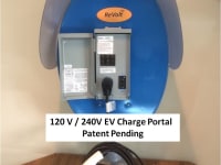 This invention provides a universal standard solution as a charging portal for both 120 and 240 volt outlets that provide the AC power source for all mobile charging cables (thus all hybrids and EVs) in all locations for a minimum investment for charging apparatus with 5X lower cost than the charging 'station' model. The invention further provides environmental (weather) protection and security protection for the portal user via solar camera and motion lighting. The access to the outlets is safety protected with circuit breakers to be turned off during the process of plugging into or out of the outlets. The technology to implement this architecture is based on proven standards and production processes for electrical hardware. The savings of the portal model vs. the station model will enable acceleration of the EV charging infrastructure at minimal investments. The 'station model' for electrical distribution is best applied to the high power (120 kW) DC charging model for highway travels delivering 90% charge in one hour.