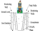 Thousands of DNAPL-contaminated sites have been identified across the United States; however, few technologies exist that can treat DNAPLs in a timely and cost-effective manner. For example, traditional pump-and-treat methods can require decades of treatment time and operational costs. Other methods that treat DNAPLs in place, such as steam injection and radio-frequency-heating, are expensive and can cause contaminant mobilization. NASA's EZVI technology overcomes these limitations by providing a method that is quick, effective, and cost-competitive. EZVI involves placing nanoscale zero-valent iron particles into a surfactant-stabilized, biodegradable oil-in- water emulsion. This emulsion is injected into the DNAPL contaminated zones of the subsurface. The DNAPL is then pulled into the emulsion where the contaminant reacts with the zero-valent iron. Through a process known as reductive dehalogenation, the DNAPL and its daughter products are degraded into ethene and other hydrocarbons. These by-products are finally broken down through biological activities in the subsurface.