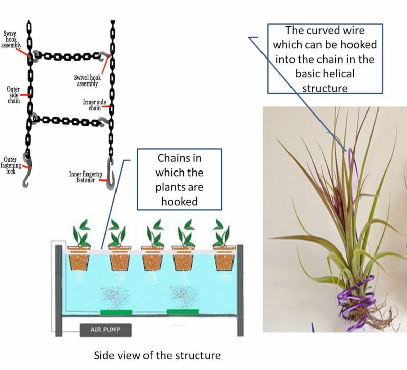 Right now the experiment is performed on lettuce, capsicum and cherry tomatoes. This method does not use any chemicals like insecticide or pesticide. The soil is not being used, thus eliminating the effect of persistent chemicals. The future aspect of this project is to use a material which can be deformed by simple mechanical forced and can be locked in a particular user-defined shape to adjust the basic helix structure at the same time bearing the flow loads.