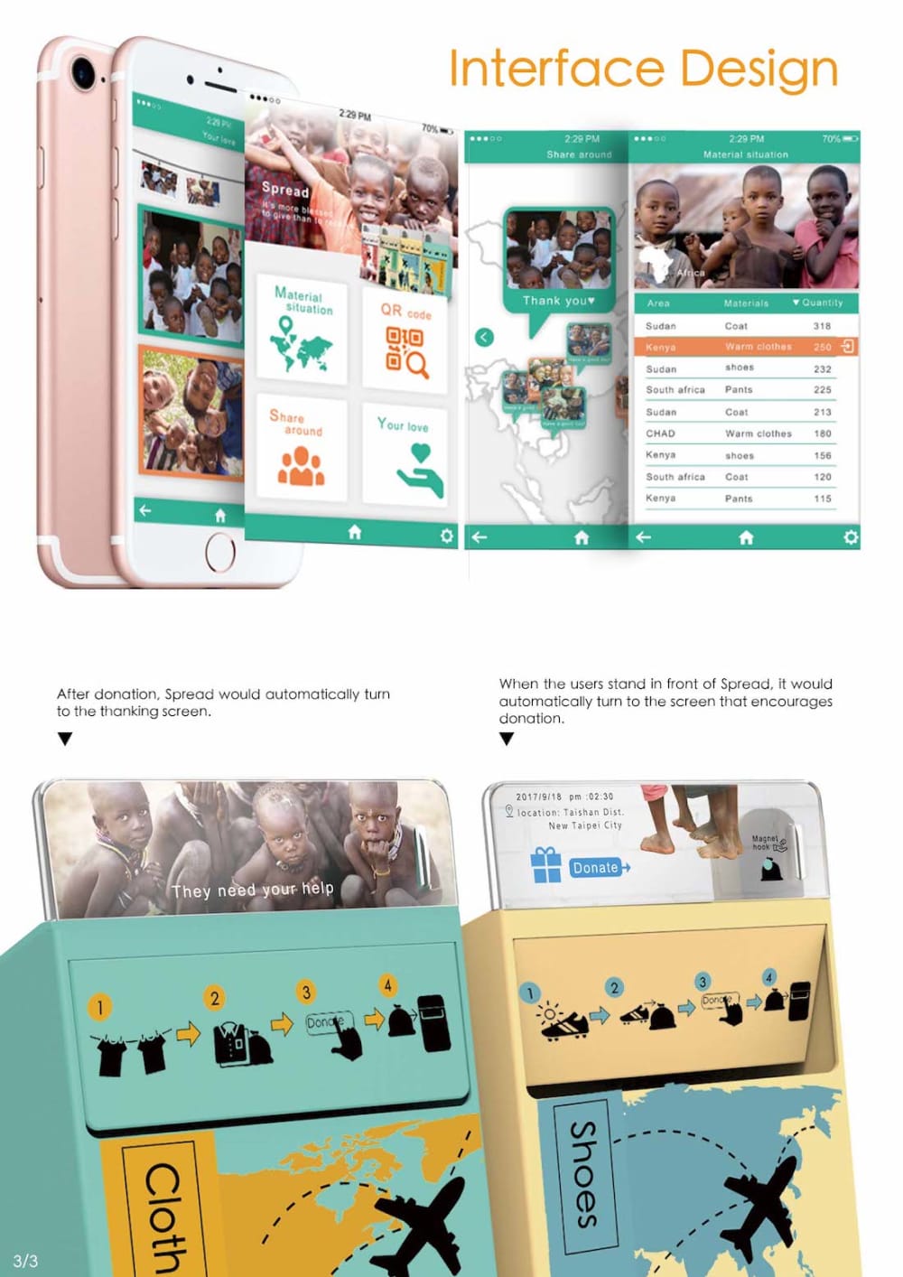 When a donor donates clothing through the Spread recycle bin or the receiving services on the APP, Spread will send the actual usage situation of the clothes to the donors after the donation. Donors may receive the screen of the underprivileged using the clothes they donate or the screen where the clothes are made into other things. By the message feedback like this, it encourages more people to participate to help more underprivileged people as well as reduce ecological damage.