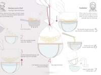 TakeOut uses “lifting” bags to separate noodles and soup, and easy to enjoy them both when place on table. By the action of lifting up, the holes in the middle layer will set noodles and soup apart, solving the problem of soaked, terrible noodles. Also, the steam from the soup can retain heat for noodles.