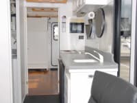 Full galley with induction and microwave cooking for low interior heat gain.