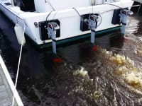 Easy to anchor and beach. Video demonstrates the capability (shows an IC engine at center, now removed).