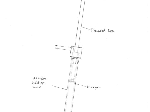 The device shown in the accompanying sketch provides a method of leveling tile by using the device to lift a corner of a tile that is low while simultaneously injecting thin set or adhesive under the tile after it has already been placed.