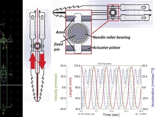 Thanks to a bio-mimetic design idea, promoting a novel self-assisting/self-advancing feature, penetrating into soft and hard formations is foreseen to be performed with more reliability, less energy consumption, less maintenance, less required component and weight for the drill and hopefully less structural integrity concerns.