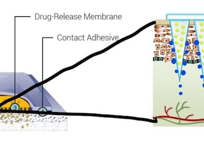 Needs Statement: A safe method of reducing hospitalizations for at-risk patients with heart failure in the outpatient setting. The device is a Biphasic furosemide transdermal patch, with coated microneedles. Microneedles are coated in a bolus dose of furosemide (in blue) for immediate release, followed by sustained release of maintenance dose (in green) over 5-7 days.