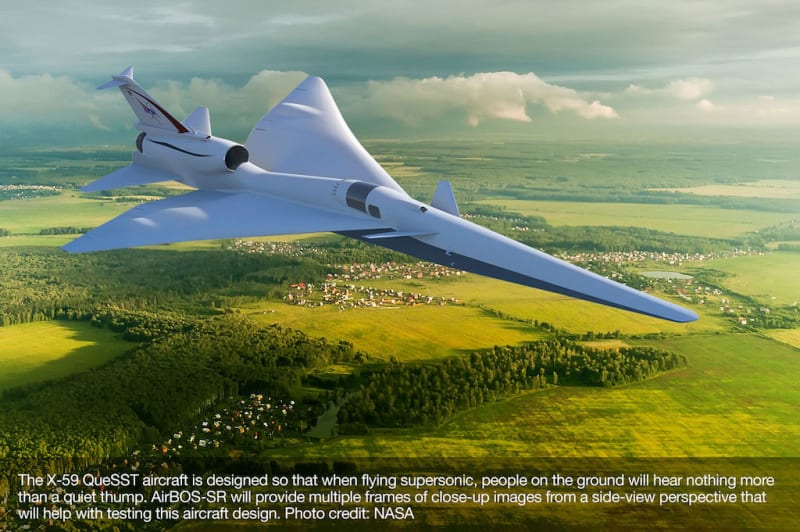 To evaluate the X-59 QueSST aircraft, NASA needs to see multiple frames of close-up images including a side-view perspective. AirBOS-SR will meet this need for NASA while also opening up a new perspective for other applications.
