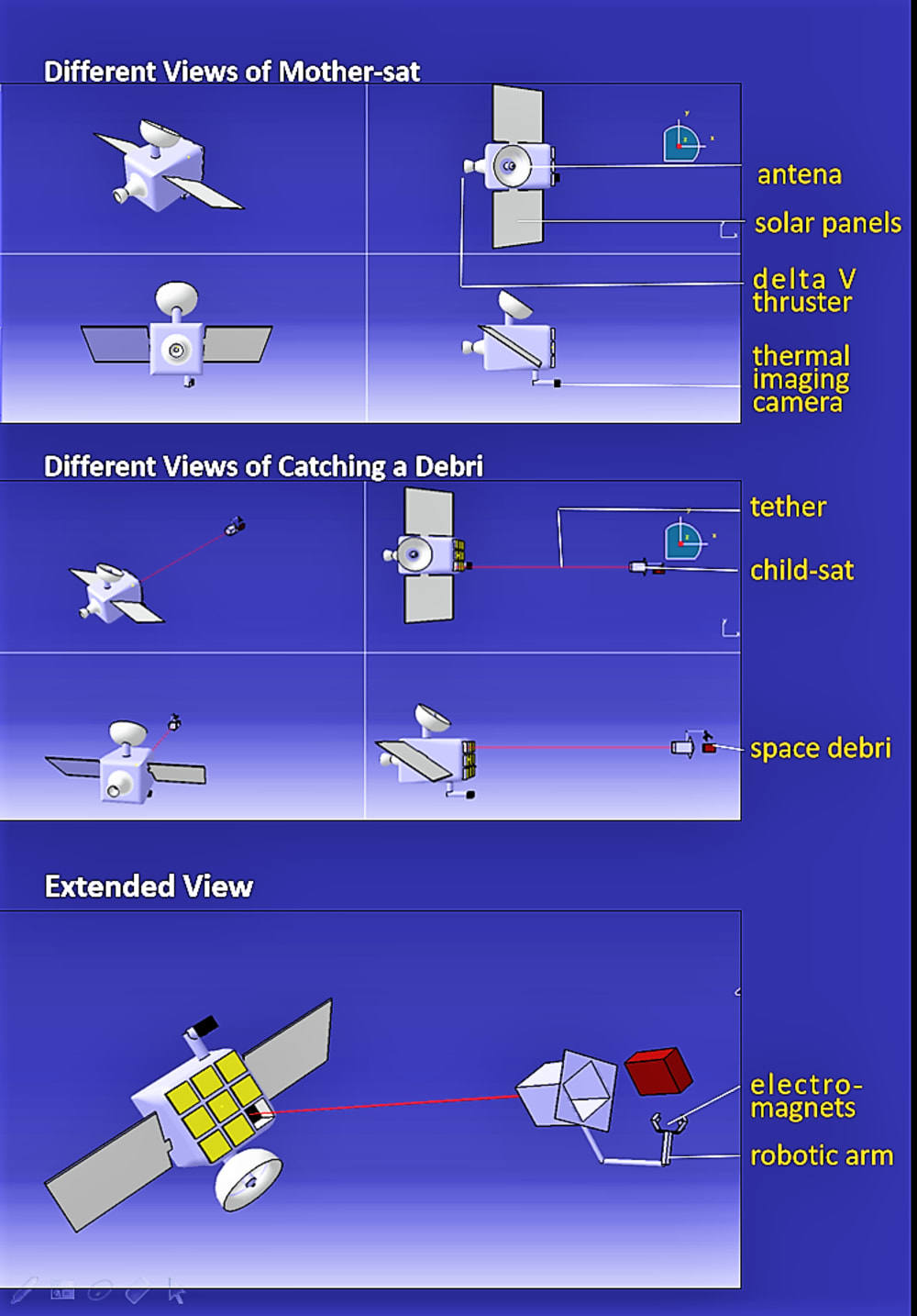 -We have come up with an idea to detect, map., capture, and dispose of space debris which ranges from 10cm to Micro LEO satellites which have a maximum range of 100 kg.